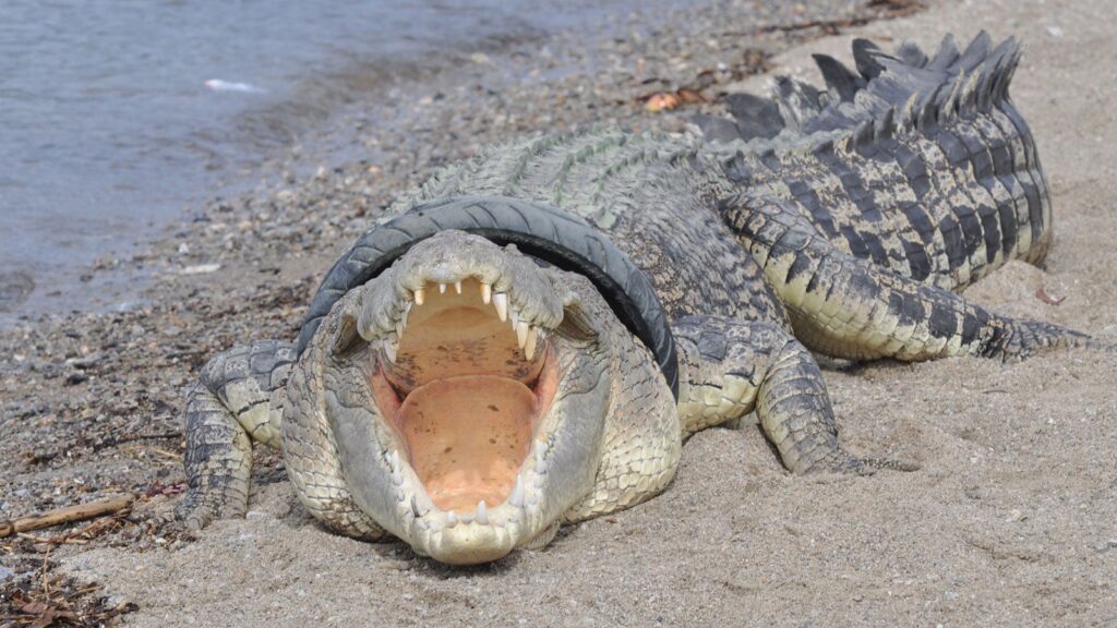 El cocodrilo de cuatro metros tenía un neumático atascado desde hacía más de un lustro